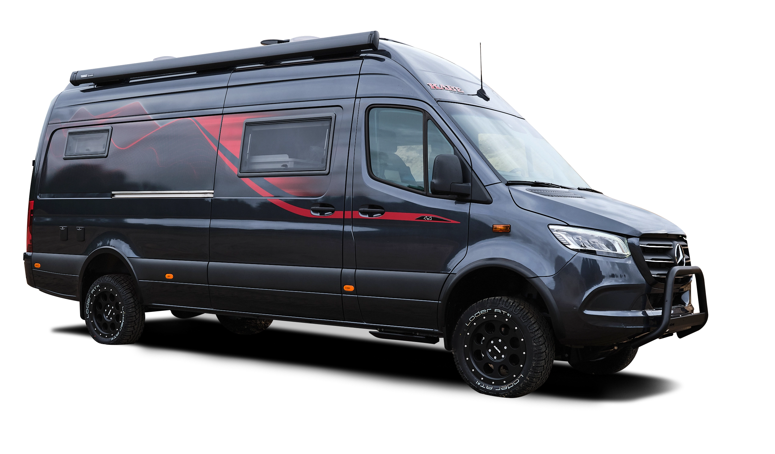 Toiletten mit Dusche an der Seite des Wagens in der Mitte des Fahrzeugs. Klappbare Einzelbetten hinten, wobei das rechte als Sofa genutzt werden kann.