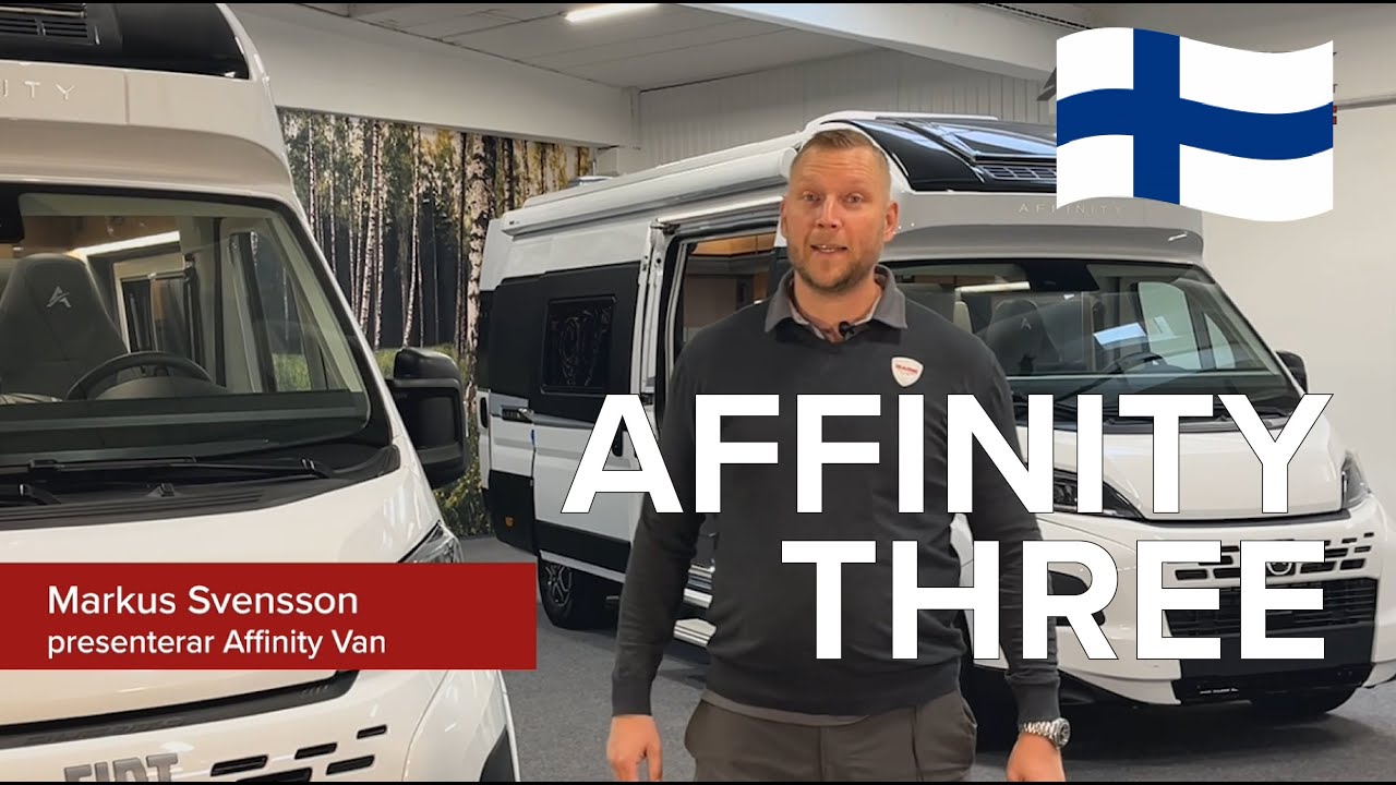 Affinity Three on retkeilyauto, joka on suunniteltu perheelle, jossa on 2+1 (kaksi aikuista ja yksi lapsi). Affinity Threen sisätila takaa mukavuuden myös pitkien matkojen aikana. Suorat yläkaapit sekä jääkaapin ja vaatekaapin sijoittaminen silmien korkeuden alapuolelle luovat vaikutelman suuremmasta ja tilavammasta tilasta.