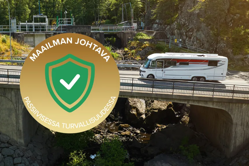 Matkustaminen matkailuautolla tarkoittaa vapautta. Mutta se on myös turvallisuusasioita, eli sitä, että voi ottaa perheen mukaan tien päälle ilman huolta turvallisuudesta. Uniikin rakenteensa ja yhteistyönsä Mercedes-Benzin kanssa ansiosta KABE on nostanut liikenneturvallisuuden uudelle tasolle – sekä paperilla että käytännössä.