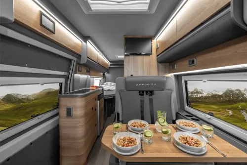Affinitys historia är inte lång. Företaget grundades 2019 som en del av KABE-gruppen - den största tillverkaren av husbilar i Skandinavien. Den första Affinity-modellen presenterades i januari 2020 på CMT-mässan i Stuttgart.