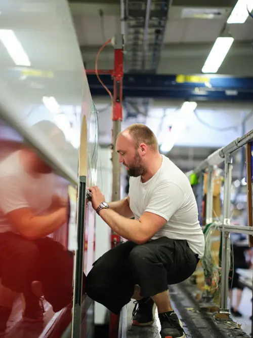 – I dag har vi en av Europas modernaste husbilfabriker med en kapacitet att producera upp till 1200 bilar årligen. Fabriken är sammanlagt 23 000 kvm stor och uppdelat på tre produktionslinjer, en för varje fordonstyp, berättar Marcus Svensson, försäljnings ansvarig Norge.