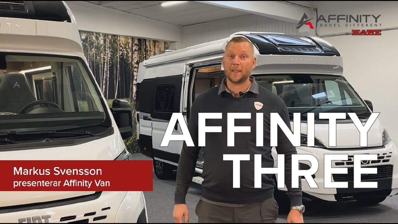 Affinity Three är en van designad för en familj på 2+1 (två vuxna och ett barn). Bodelen i Affinity Three säkerställer komfort, även under långa resor. De raka överskåpen samt placeringen av kylskåpet och garderoben under ögonhöjd skapar en känsla av ett större och rymligare utrymme.